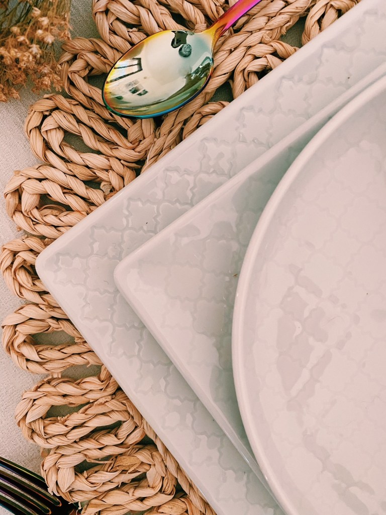 Per la mia tavola ho scelto la linea Tile White: il bianco oltre a regalare luminosità mi ha permesso di creare con gli stessi elementi tre stili differenti. Vi lascio un po’ di immagini, sul mio profilo Instagram poi potete trovare anche dei Reels. Volevo dimostrare che, se la “base” del servizio piatti è bella e originale, è possibile poi giocare con complementi anche davvero diversi senza perdere l’eleganza e l’armonia sulla tavola. Poi mi direte se ci sono riuscita…