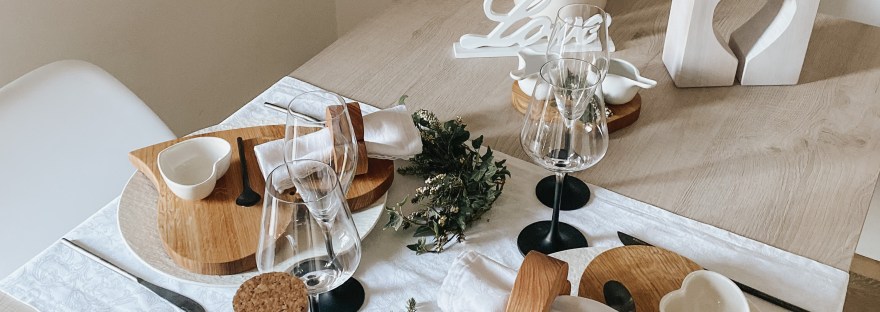 Tavola di San Valentino in bianco e legno